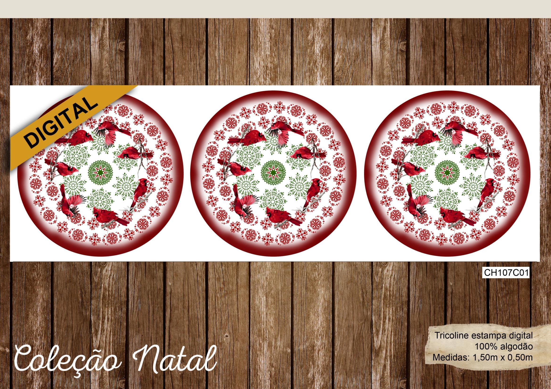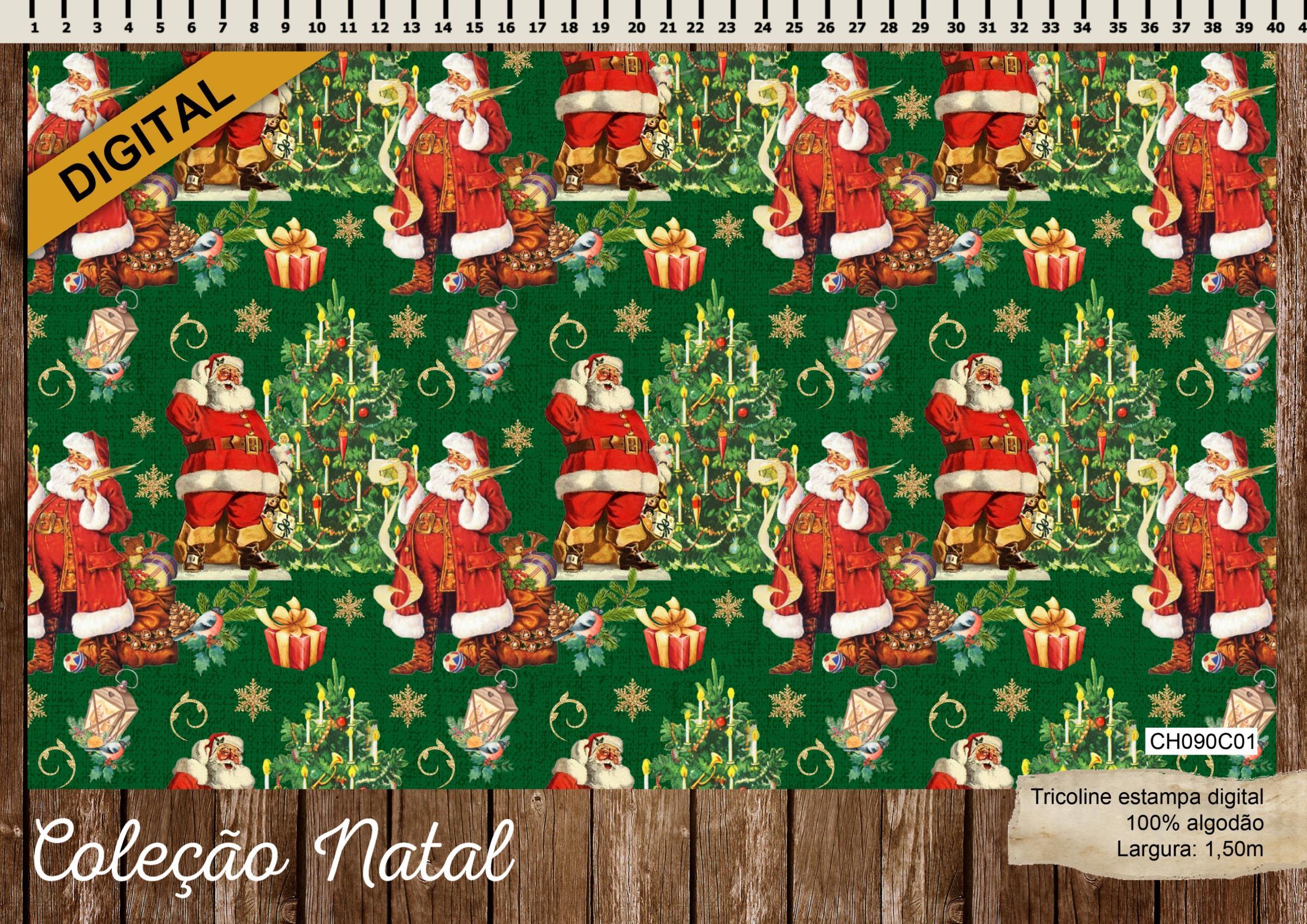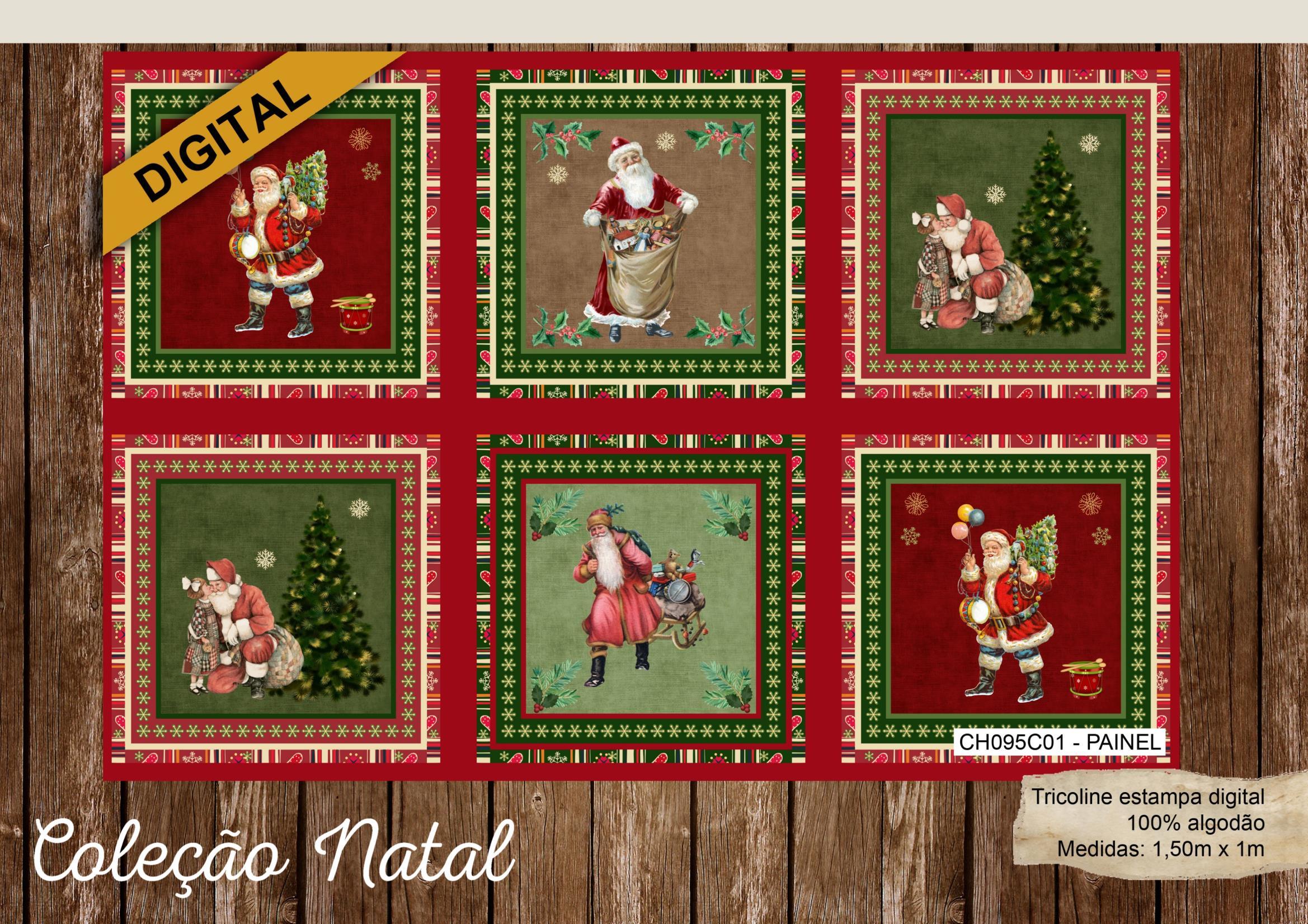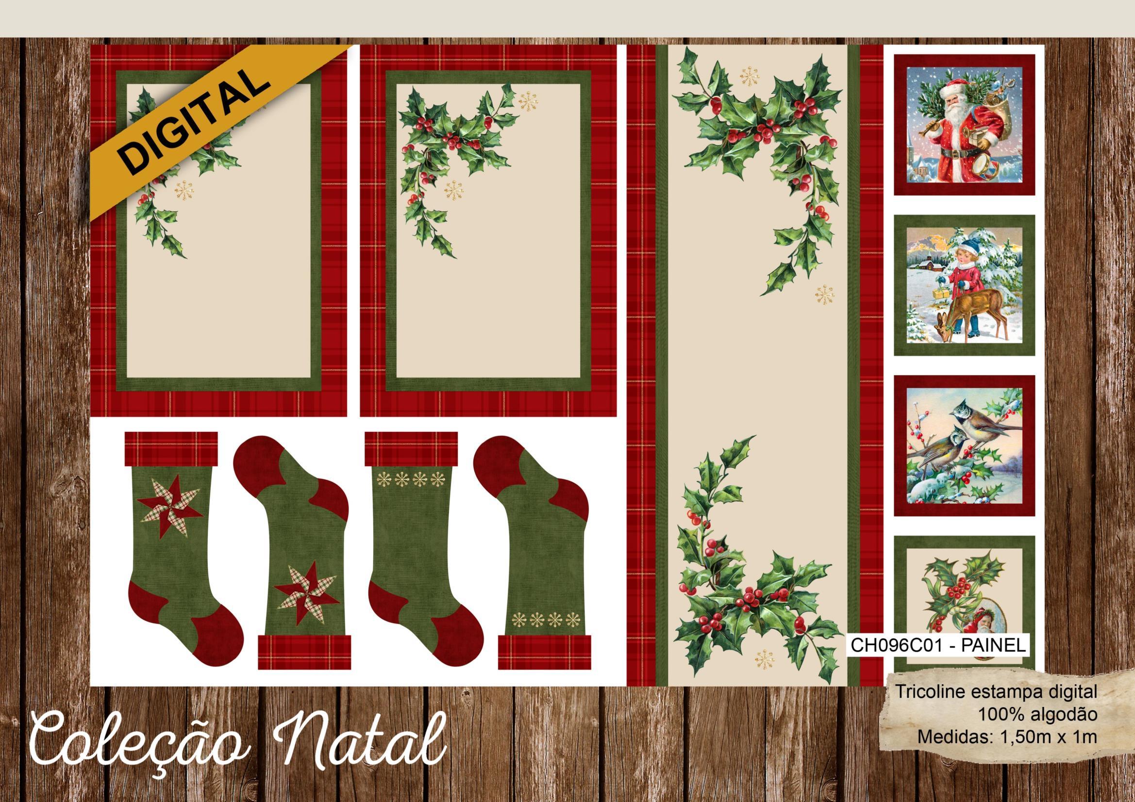 São treze opções de estampas com imagens natalinas encantadoras, sendo três painéis, todas produzidas em nossa tricoline 100% algodão de alta qualidade.